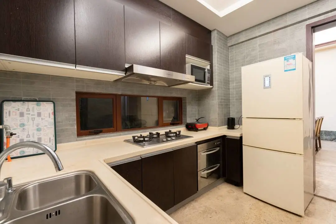 6、免费使用别墅内厨房配置:冰箱,微波炉及简易餐具