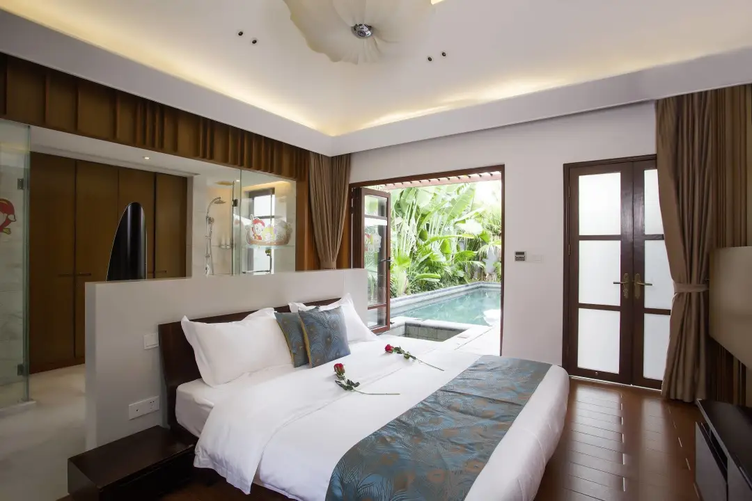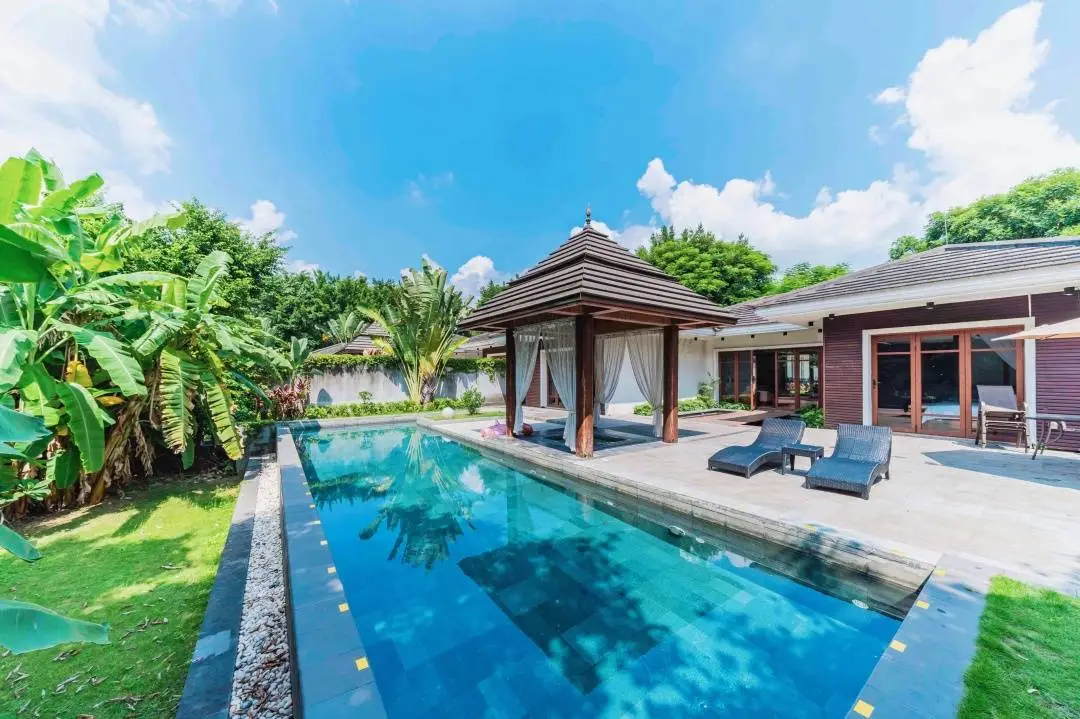 升级巴厘岛三房别墅(主卧: 1.8m*1,套房;次卧一: 1.8m*1,套房;次卧二:上下铺1.2+1.4床或1.5单间,随机安排)