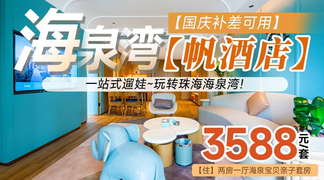 一站式遛娃~玩转珠海海泉湾!【国庆补差可用】¥3588起住帆酒店-两房一厅亲子套房,4大2小享海洋温泉108个池+萌宠乐园+加勒比水公园+机动游戏+剧场