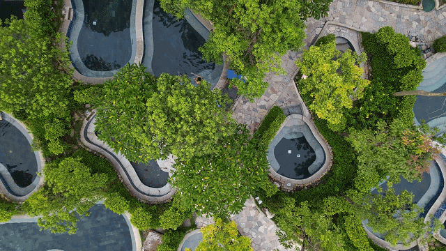 度假区内55个各具特色的温泉池