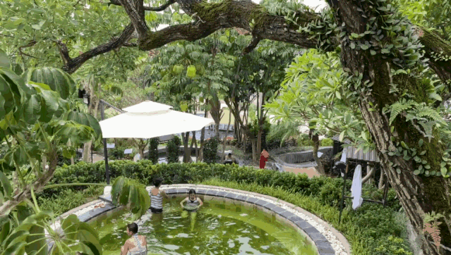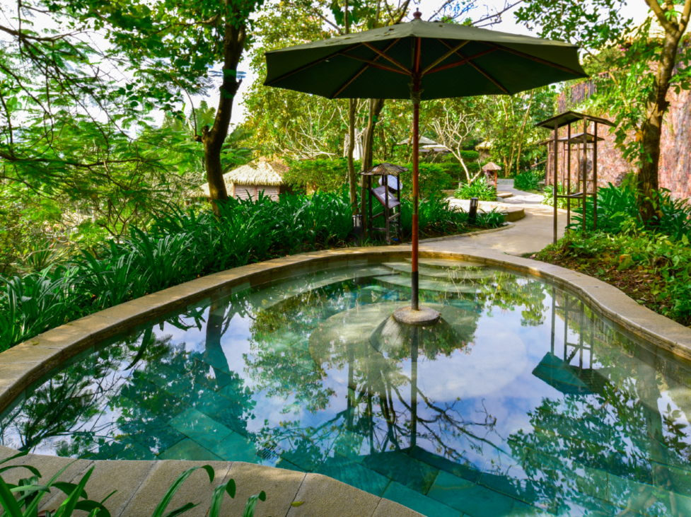 玫瑰池、牛奶池、红酒池、草药池、天然山泉池