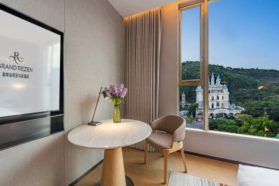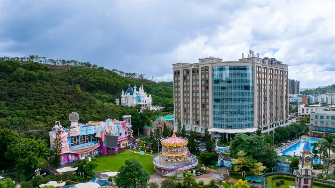 酒店建筑外观尊贵时尚,内有高端豪华客房286间、国际宴会厅、会议室、中西、日料餐厅以及可容纳1500人的特大宴会厅,室内外标准泳池、健身房、主题公园等配套设施一应俱全,是一家集商旅拓展、蜜月度假、会议会展、家庭亲子旅游为一体的大型旅游度假综合体酒店。