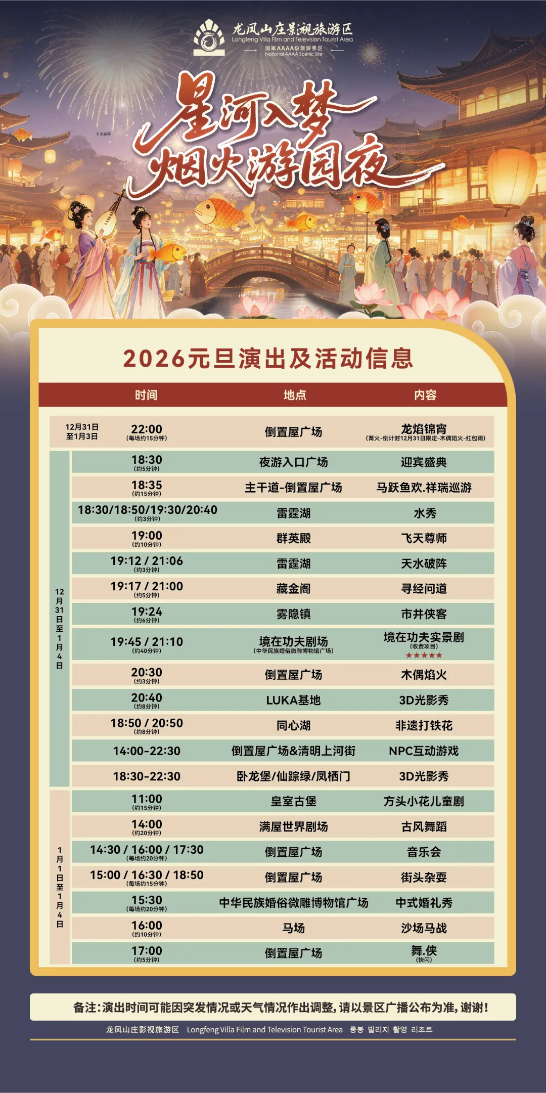 *景区表演免费观看,表演项目仅供参考,以当天景区实际开放为准!