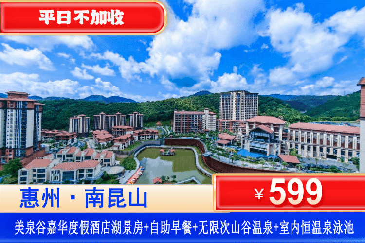 【南昆山·美泉谷嘉华度假酒店】平日不加收!599抢美泉谷嘉华度假酒店湖景房+享2大1小早餐+无限次山谷温泉+室内恒温泉泳池+无边际泳池+儿童乐园,打卡湿地公园、泉谷农场、萌宠乐园、网红大堂吧!