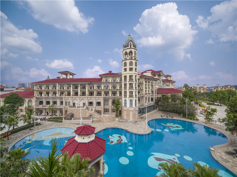 酒店欧式古典钟楼与湖边美景交相呼应,日落时分来到这里,仿佛置身于某个欧洲小镇