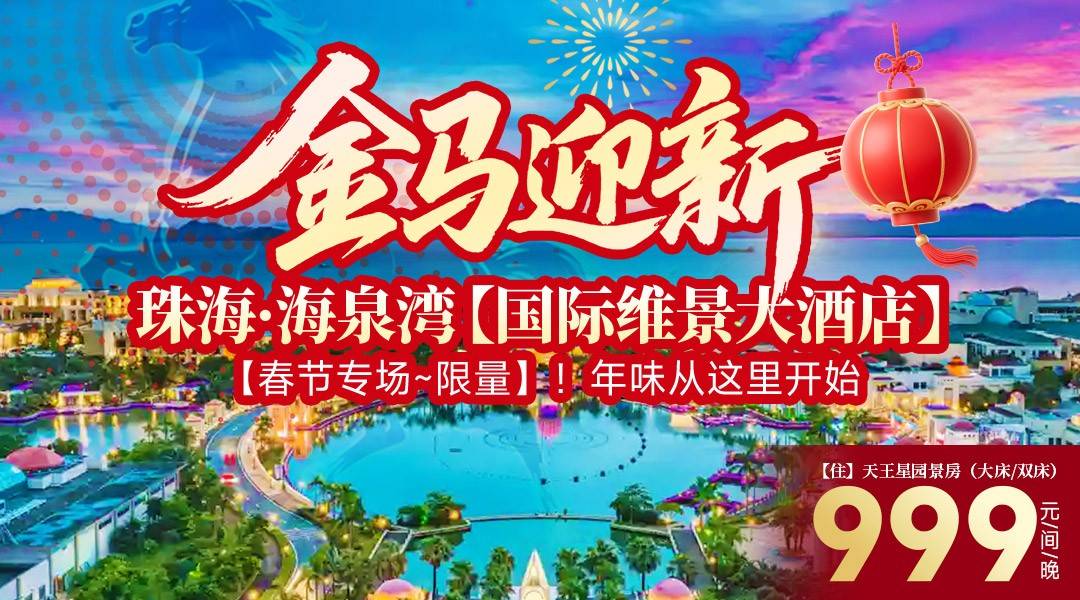 【春节专场~限量】!年味从这里开始¥999起住珠海海泉湾-维景大酒店/帆酒店1间1晚,享2大2小早餐+三大园区3选2+梦幻剧场表演 +烟花秀