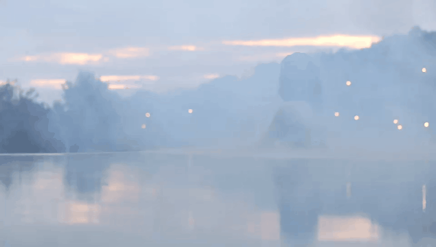 四周崇山峻岭,山峰叠翠,云雾缭绕