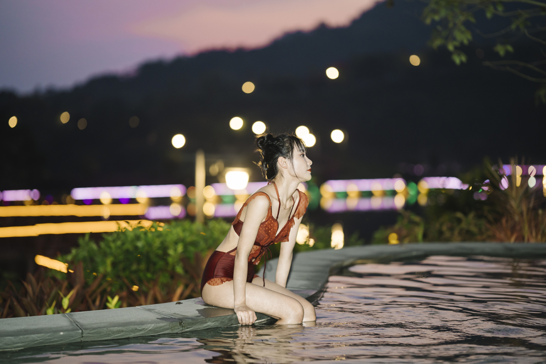 茶汤泉、艾草池、各色特色养生池,洗净疲惫