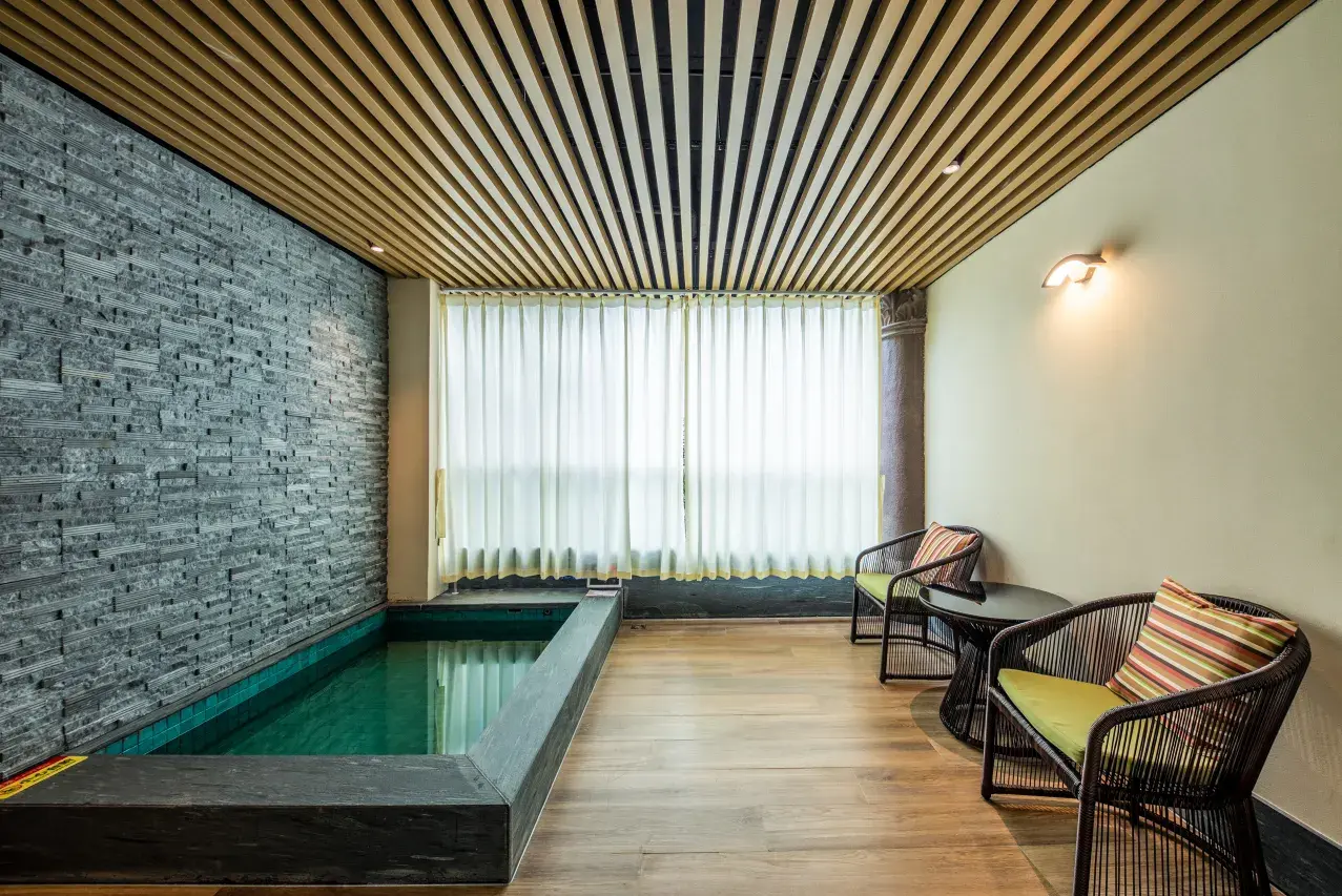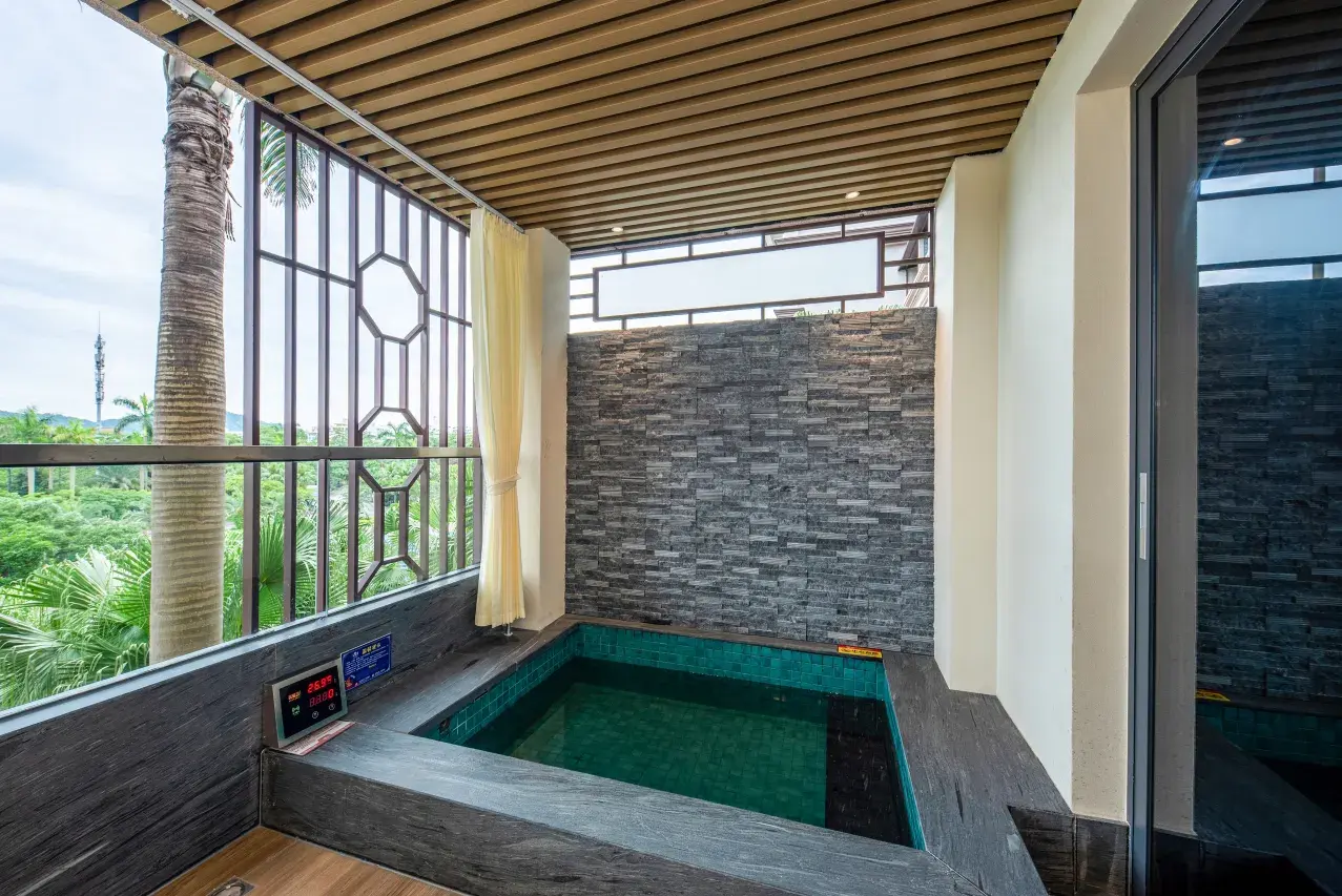 2、房型介绍:温泉豪华房,带私家泡池,免费赠送2池水;