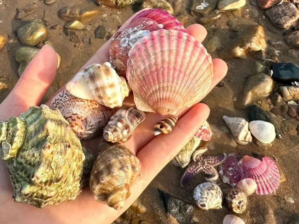 赶海推荐地点:双月湾万科小区附近内港(内港在跨海大桥旁🌉,无风浪,适合带小朋友、宠物,主要是沙白贝,收货种类不多,安全。)
