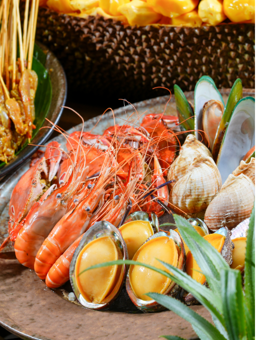西餐、海鲜刺身、中餐美食等多元化的美食汇集