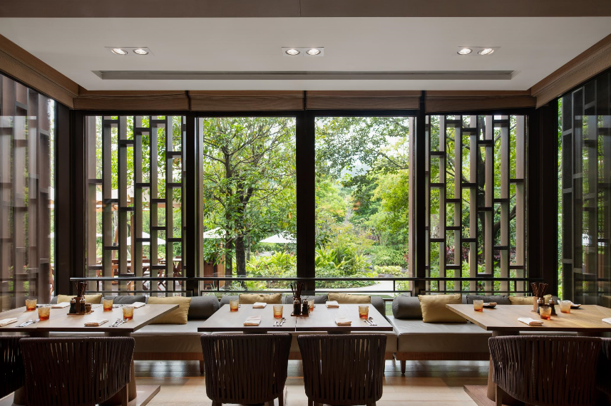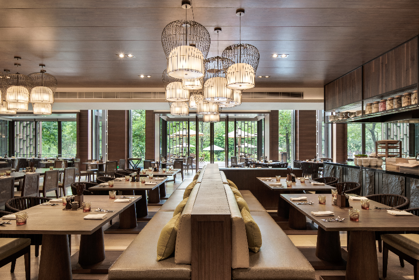 餐厅环境自然而不失现代,拥有可以现场制作料理、功能完善的开放式厨房。
