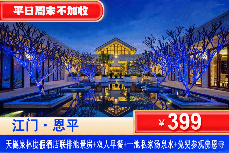 【平日周末不加收!】399抢江门恩平天樾泉林度假酒店;联排池景双床房或大床别墅+私家汤泉水1池+自助早餐+恩平西湖+航天馆、佛恩寺祈福~