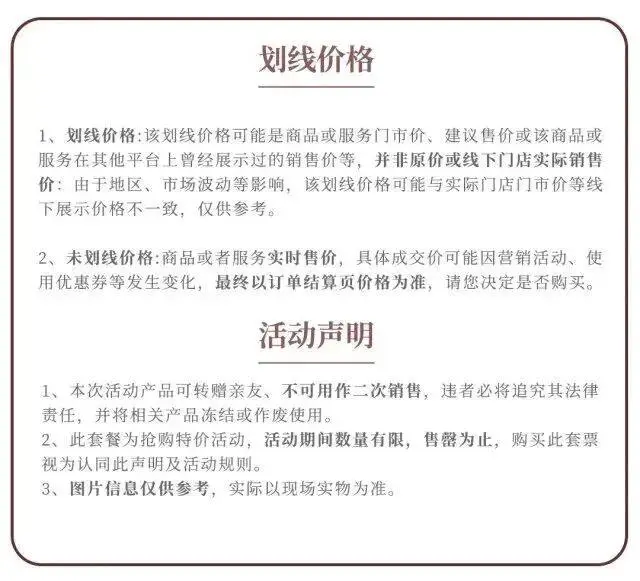 2、本产品为预售产品;预约成功后,不可改期或者退款;过期未使用不设退改且预约码自动作废。请您认真阅读本次抢购“预订须知”。