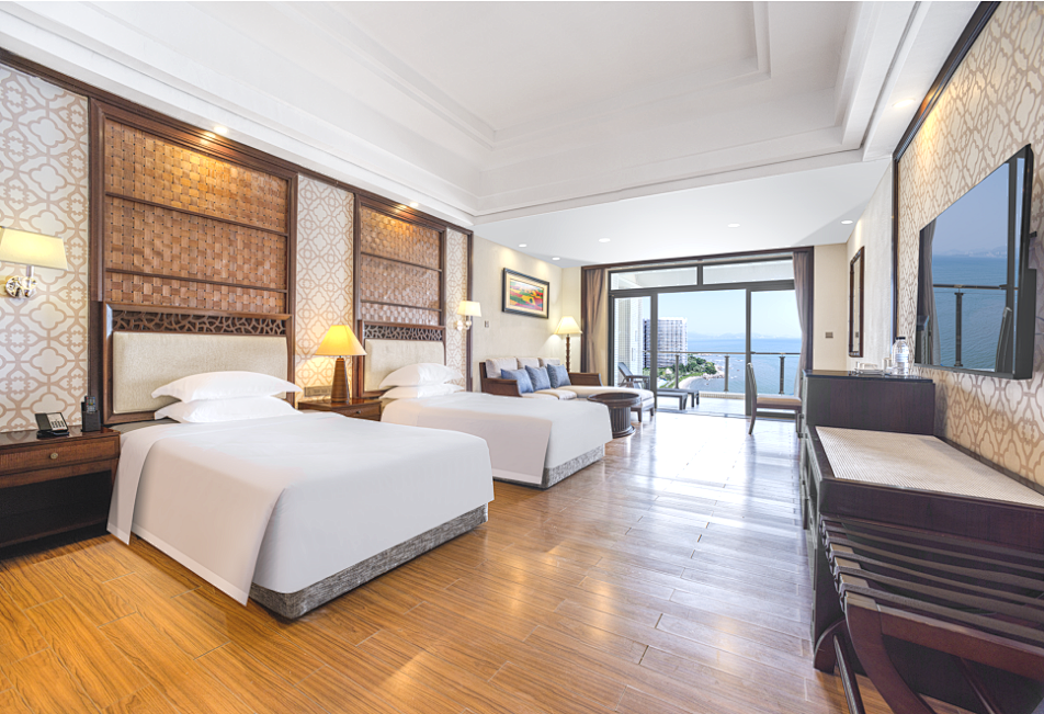 酒店有336间豪华典雅的海景客房及套房