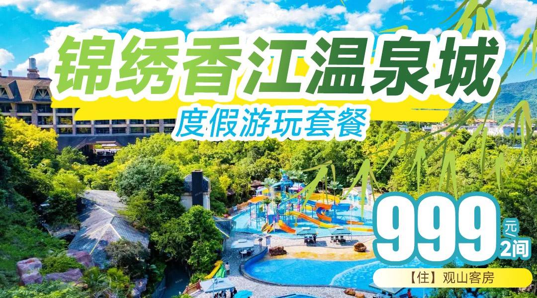 【度假特惠买一送一】住观山房+丛林飞越~惊喜从天而降~仅需¥999住锦绣香江温泉城1间2晚或2间1晚!享双早+无限次森林温泉,畅玩空中乐园+萌宠乐园