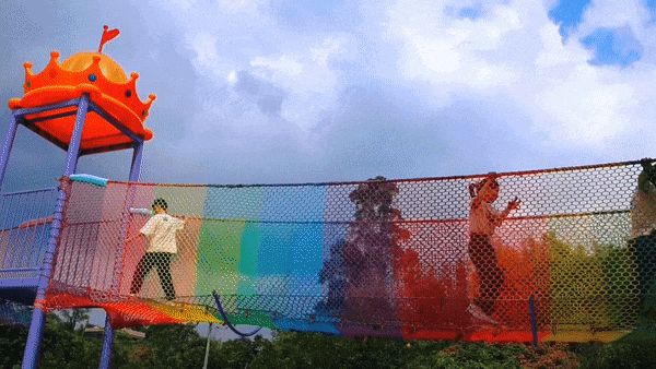 色彩绚丽的滑道像一道彩虹挂在高处