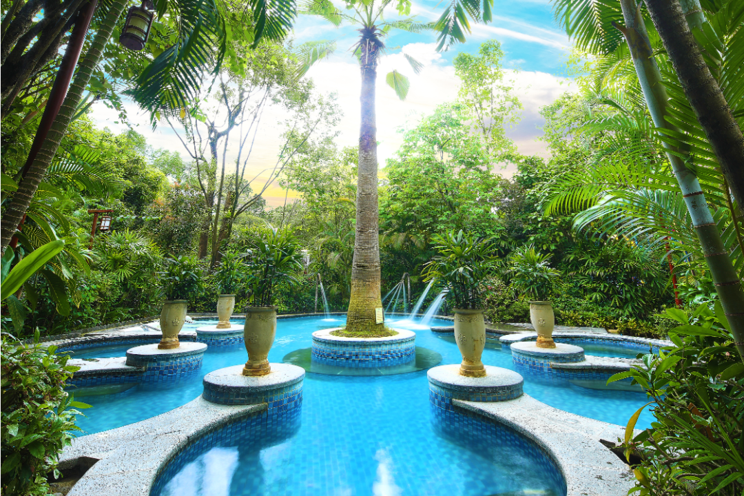 温泉区十分幽雅,借助高低错落山势及名贵的亚热带珍稀树种,创造私密空间和静谧的疗养环境。