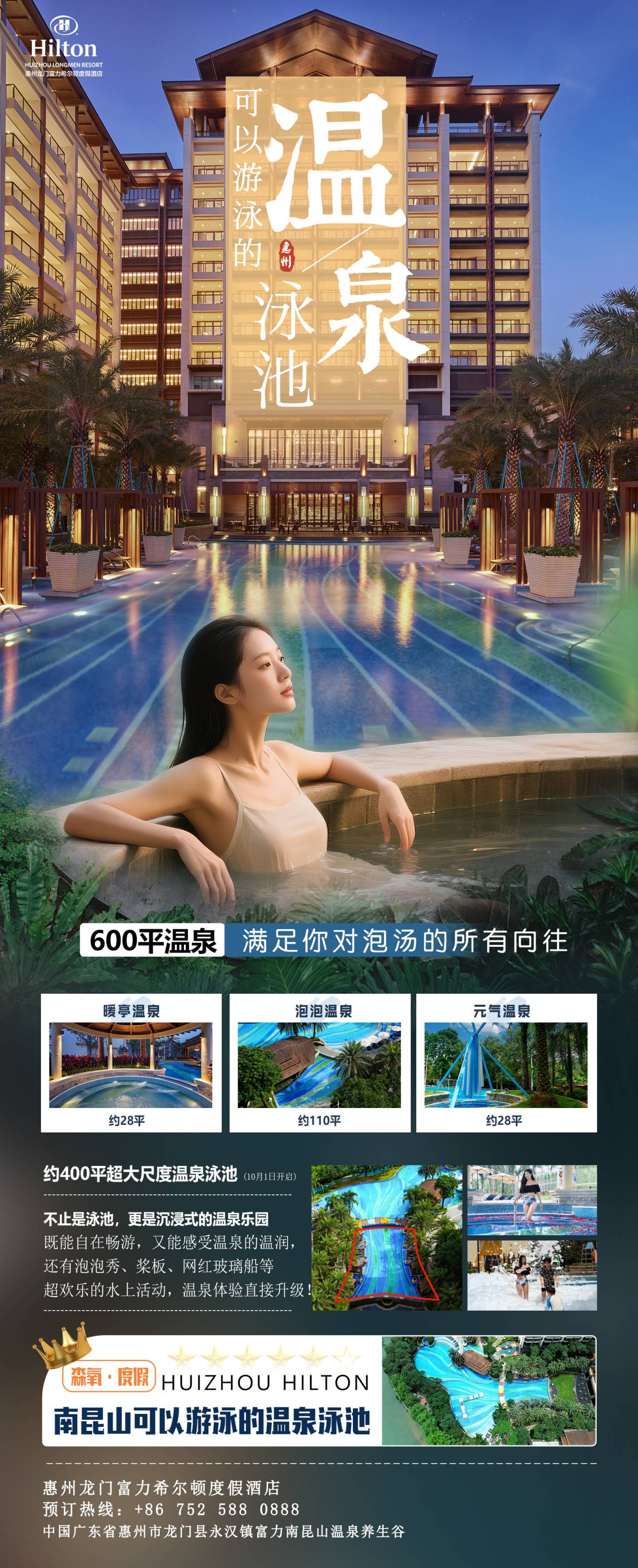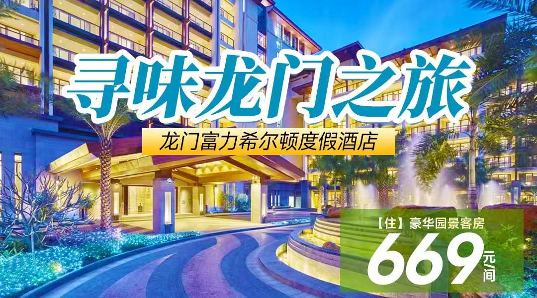 【寻味龙门】¥669住富力希尔顿,2大1小鲜荟晚餐+皮划艇体验+400平温泉泳池放肆玩!含豪华园景房+早餐+鲜荟自助晚+丰富康乐体验~
