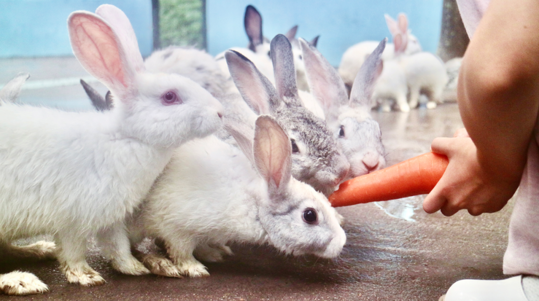 快来亲自喂可爱的小兔子们