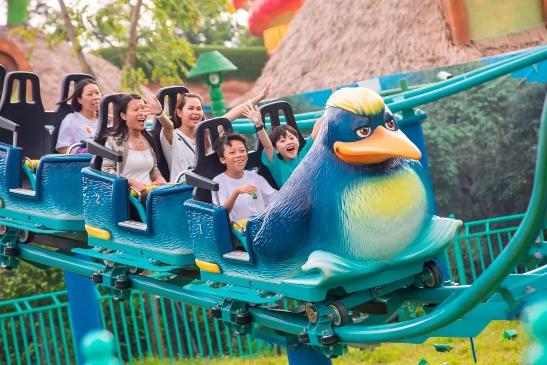 雨林飞翔主题区的“鹦鹉过山车”全长约 1278 米,时速从 0 到 108 公里仅需 3 秒!快来逐一打卡刺激吧!