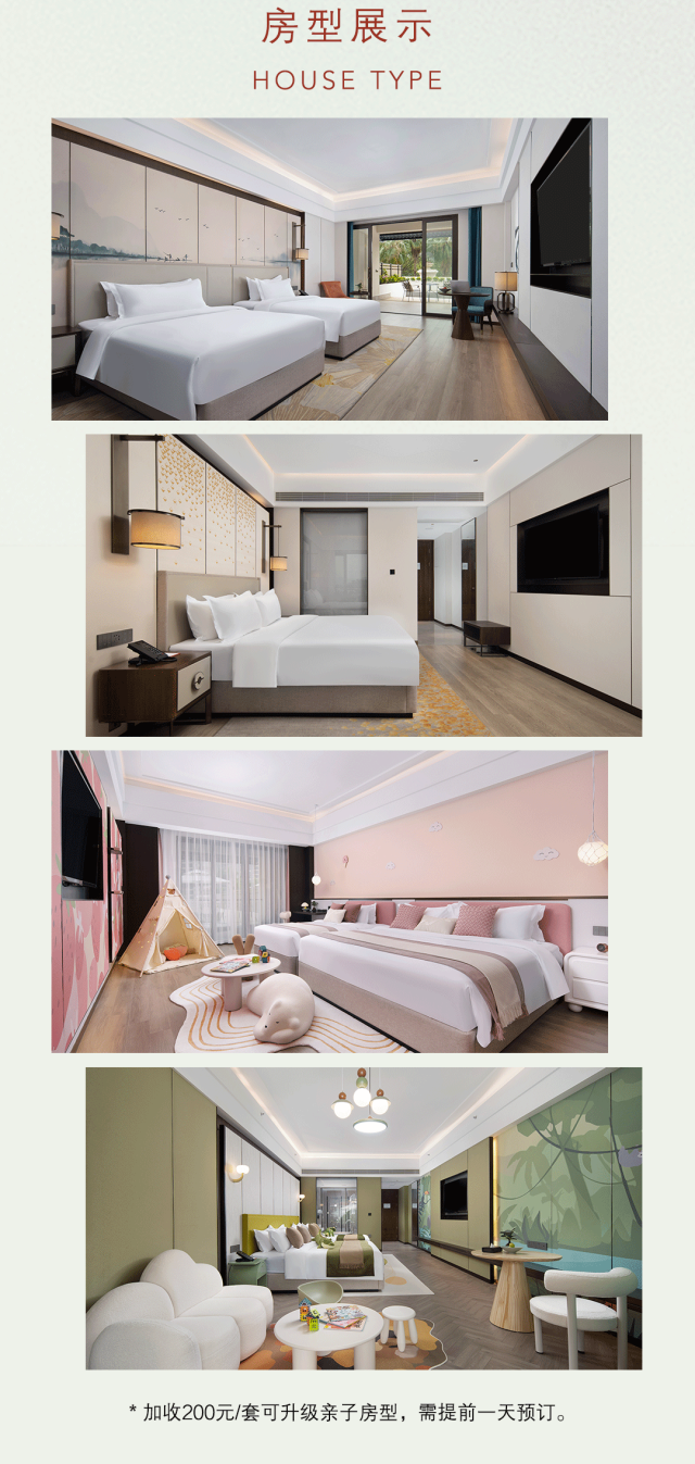升级房型加收:升级主题亲子房需加收200元/间/晚、升级庭院汤池房需加收300元/间/晚